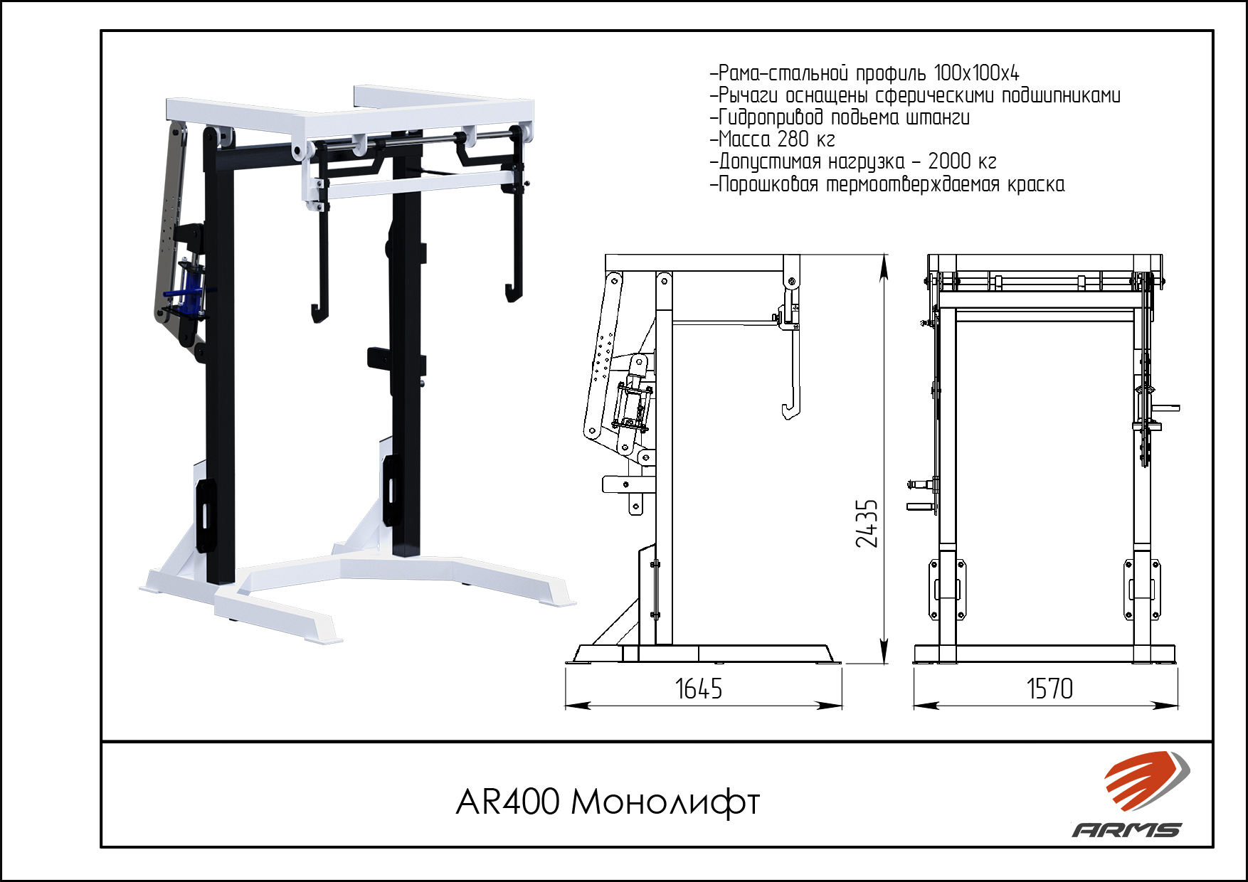 Монолифт для пауэрлифтинга рассчитан на штангу массой до 800 кг. Система оснащена гидравлическим механизмом, с помощью которого производится изменение высоты штанги в широких пределах, не снимая дисков со штанги. Монолифт позволяет подстраивать высоту расположенной на упорах штанги под рост каждого спортсмена. Данная стойка для приседаний отличается особой прочностью и невероятной устойчивостью к серьезным механическим воздействиям.