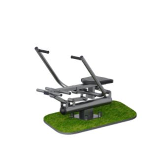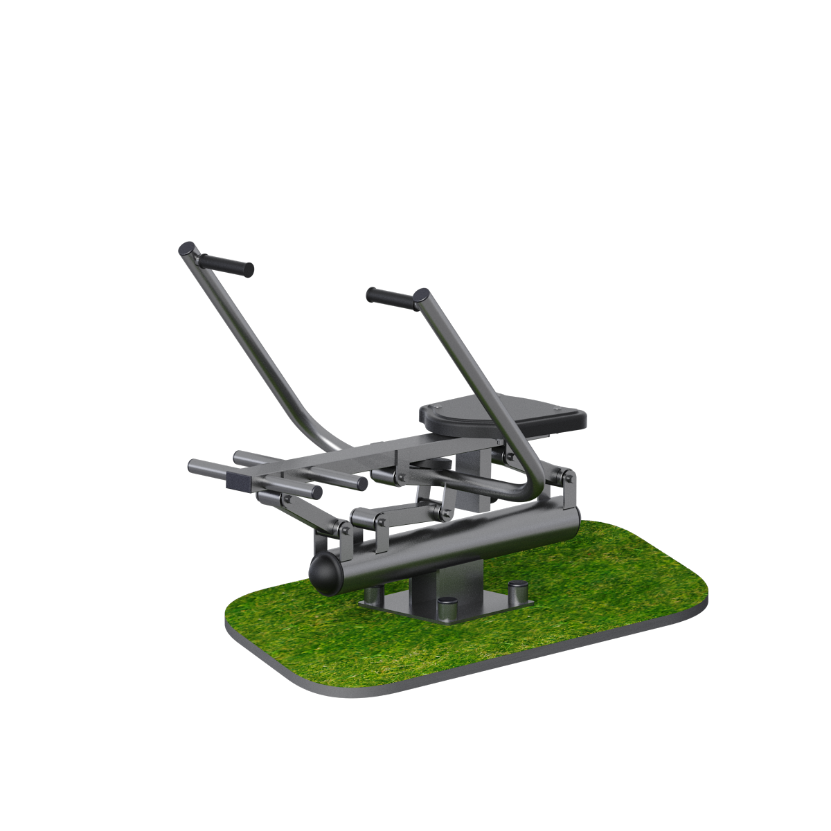 Принимаете положение сидя, опираетесь ногами об упоры и тянете за рукояти на себя.